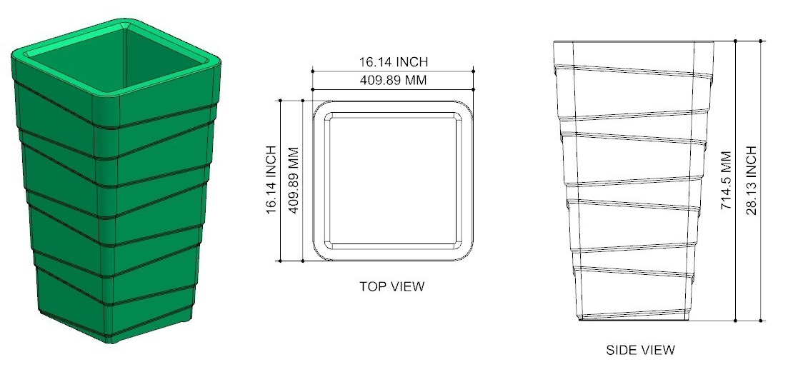 Diameater – inch- 16                                                                                                     Height    – inch-28