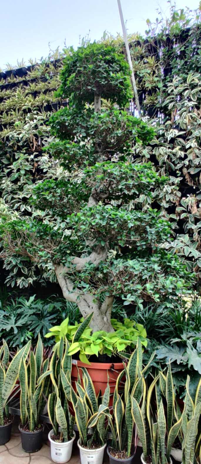 The Ficus Bonsai (often Ficus retusa or Ginseng) is a popular, low-maintenance indoor tree characterized by its thick, bulbous, aerial roots and glossy, dark green oval leaves. Ideal for beginners, this tropical plant thrives in bright, indirect light, features a distinct curved trunk, and acts as a natural, air-purifying indoor centerpiece.