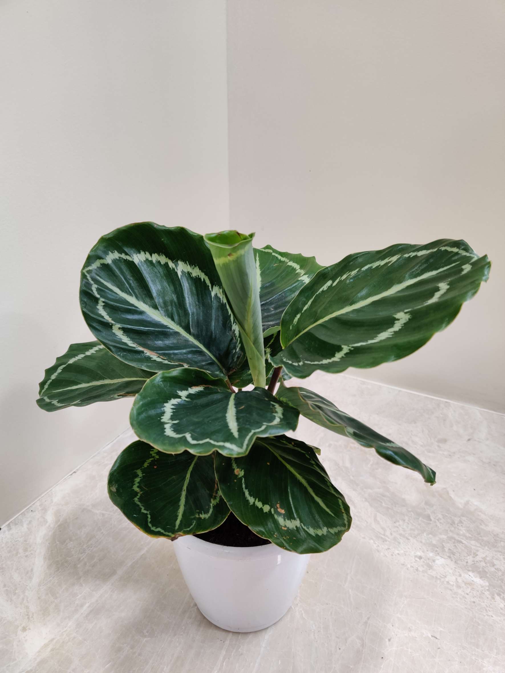 A stunning indoor plant with velvety dark red leaves featuring bold, brushstroke-like patterns and deep purple undersides. Loves bright, indirect light and high humidity. Keep soil consistently moist (use distilled water if possible).