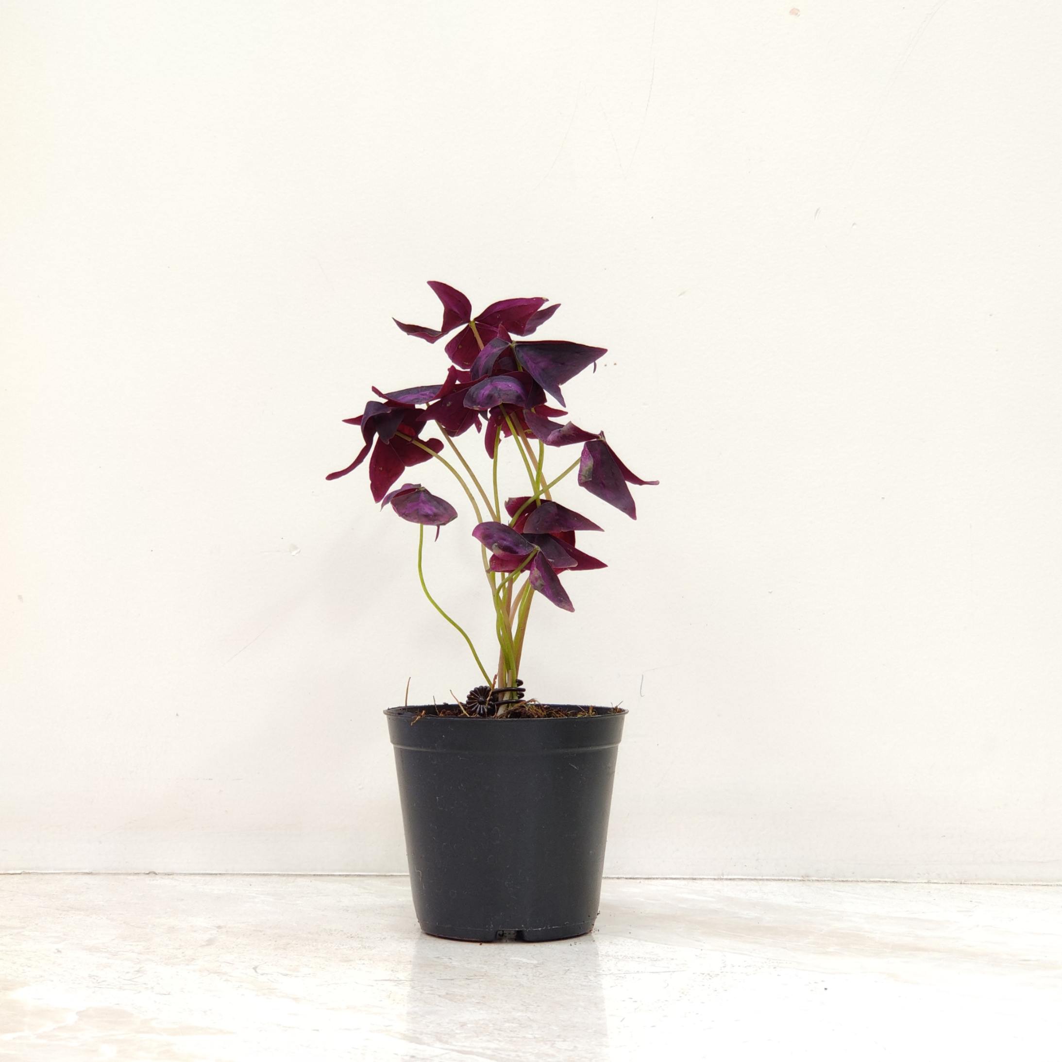 Oxalis in a 10 cm pot is a compact, charming, and low-maintenance perennial, often sold as Oxalis triangularis (purple) or Oxalis regnellii (green). These plants feature clover-like, light-sensitive foliage that displays nyctinasty—closing at night and opening in the day—with delicate white or pink flowers. Ideal for small indoor, bright spaces.