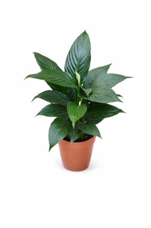 The Spathiphyllum Crown, often sold in a 14.5 cm (approx. 5.7 inch) pot, is a popular, compact, and elegant houseplant known as the Peace Lily. This tropical evergreen is highly valued for its lush, glossy dark green foliage and long-lasting, white, sail-like blooms that rise above the leaves.